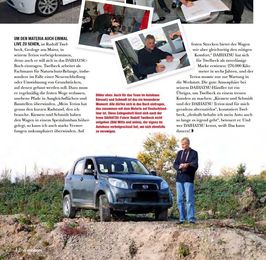 Hier noch ein Bericht in der Daihatsu-Zeitung von 2012, da hatte er 276.000km runter, jetzt fast das doppelte: