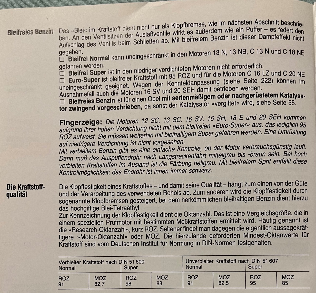 Die Klopffestigkeit ist heute wie 1987 bei ROZ 95, also kein Wirkungsgradvorteil über früheren Zündzeitpunkt.