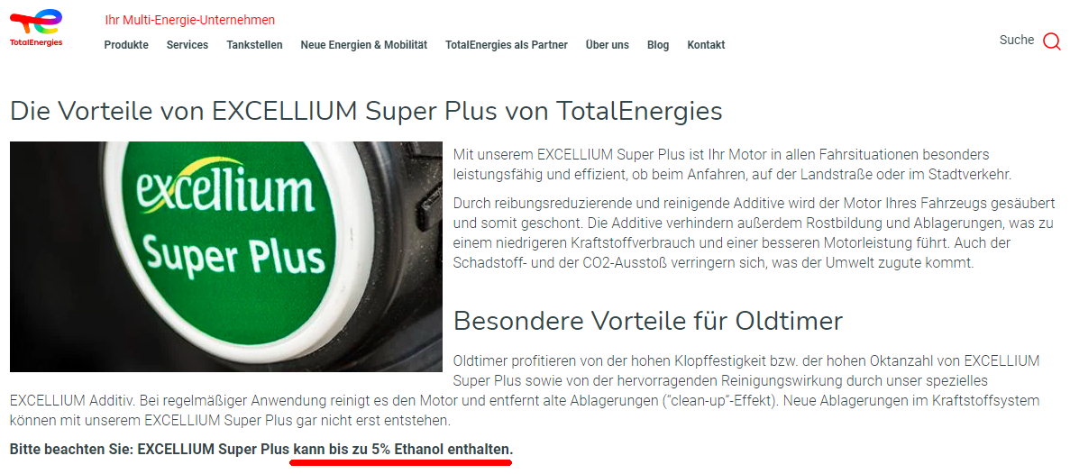 Das Beste ist dann noch, sie schreiben: ihr Kraftstoff "kann" bis zu 5% Ethanol enthalten. Wie soll der Kunde feststellen, was er da in seinen Tank schüttet, wenn es nicht mal die Hersteller selbst definitiv sagen können?