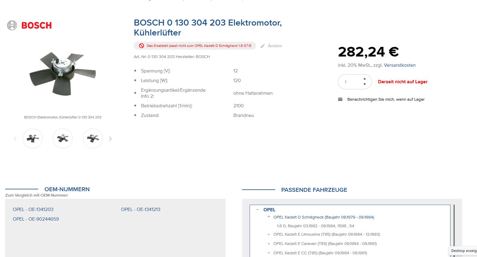 Auf den gängigen Verkaufsportalen gibt es keine technischen Daten mehr. Auch wenn dein Lüfter einer von einem 1.2- 1.4er ist.