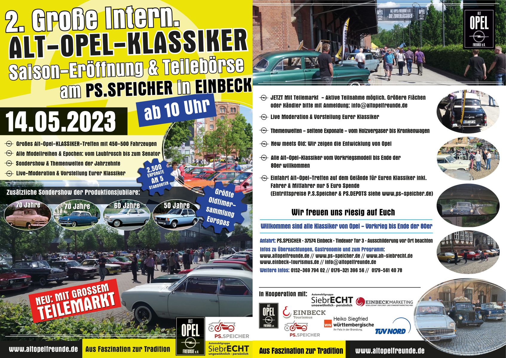 14.05.23 2. Große int. Alt-Opel-Klassiker-Saisoneröffnung mit Teilemarkt am PS.SPEICHER in Einbeck 37574 mit Kadett Jubiläums-Show