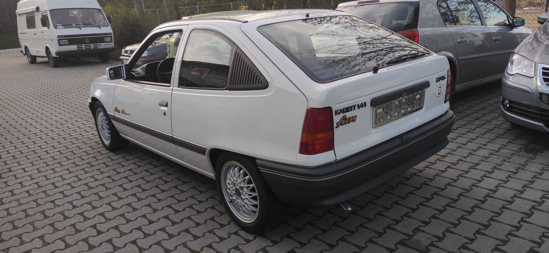 Der Kadett steht vorerst auf Champion Rädern, für die geplanten Felgen muss noch was vorbereitet werden.