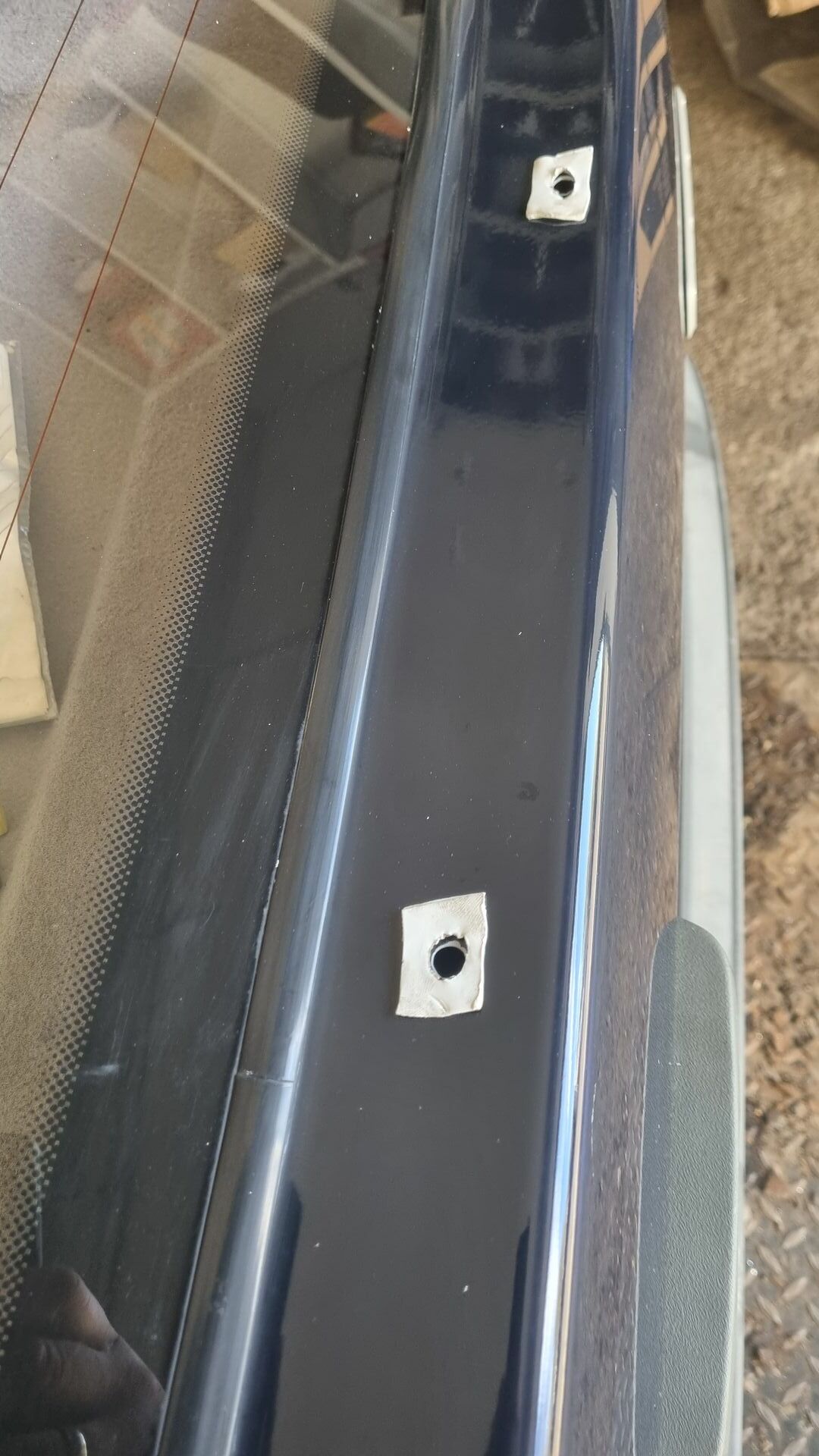 Hab da kurzerhand eine schablone gefertigt und auf die Heckklappe übertragen. 5 Löcher gebohrt und anschließend die löcher mit Grundierung angepinselt.