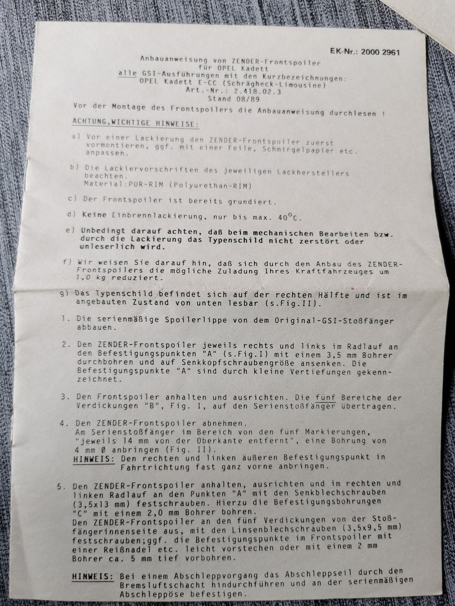 Vom Vorbesitzer hab ich damals das Cabrio mit Heckflügel und Frontlippe übernommen, aber leider ohne ABE/ Teilegutachten.