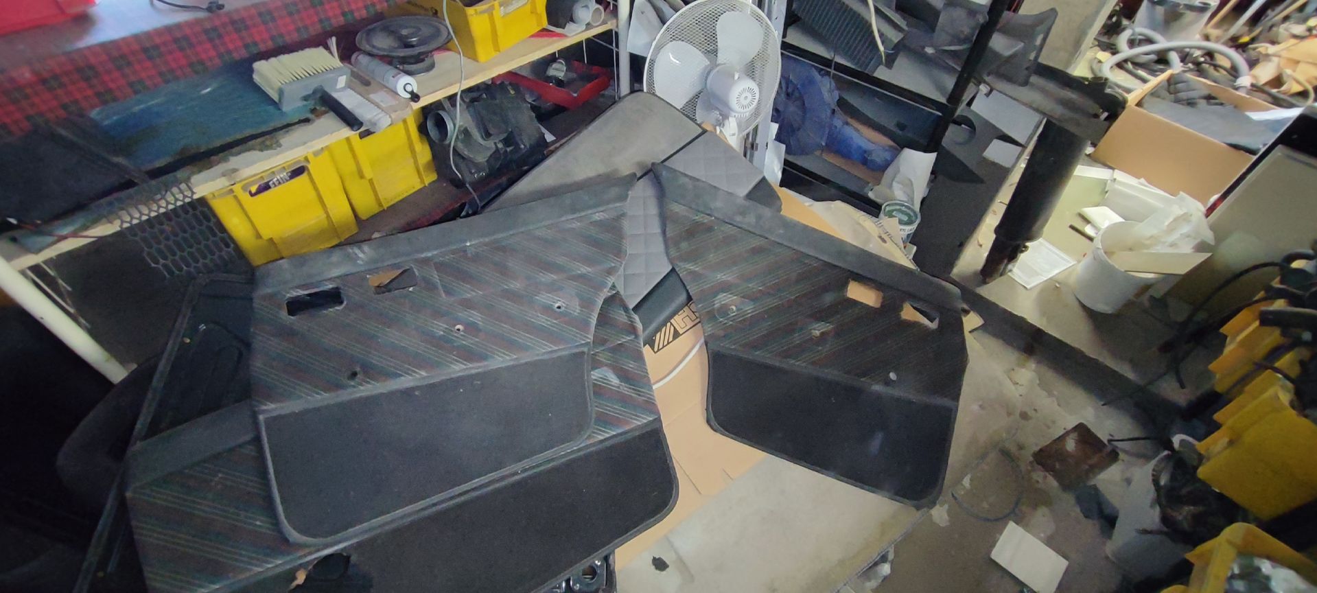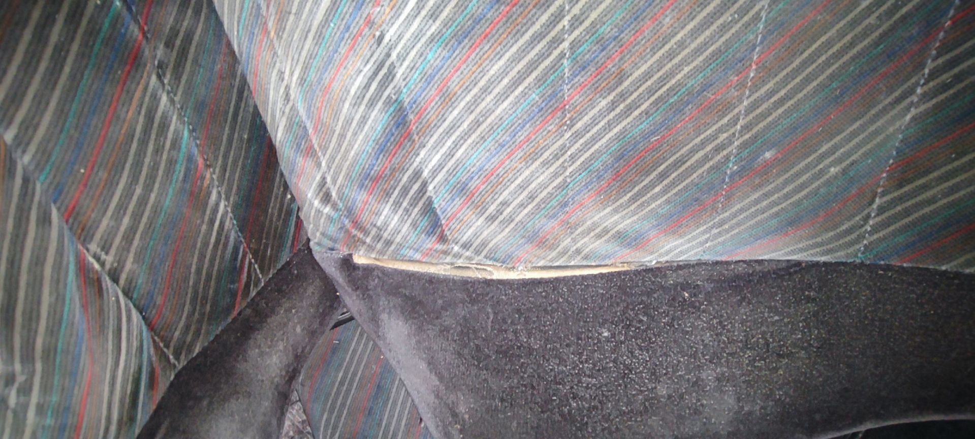 Wangen an allen Sitzen OK, nur zwischen Rückenstück und Wange löst sich die Verbindung zwischen Wange und Rückenlehne, jeweils an beiden Fahrersitzen.