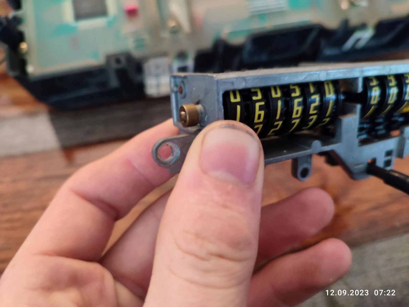 Die Zahnräder gibt es als SLS nachfertigung, zum Austausch muss allerdings das LCD Instrument raus und geöffnet werden. Dann ist das Zählwerk mit drei schrauben herausnehmbar. Das Zählwerk muss dann halb zerlegt werden um an das Zahnrad zu kommen. Beim Zusammenbau ist Vorsicht geboten, stimmt die Position eines Bauteils nicht 100%ig, blockiert dad Zählwerk nach wenigen hundert Metern