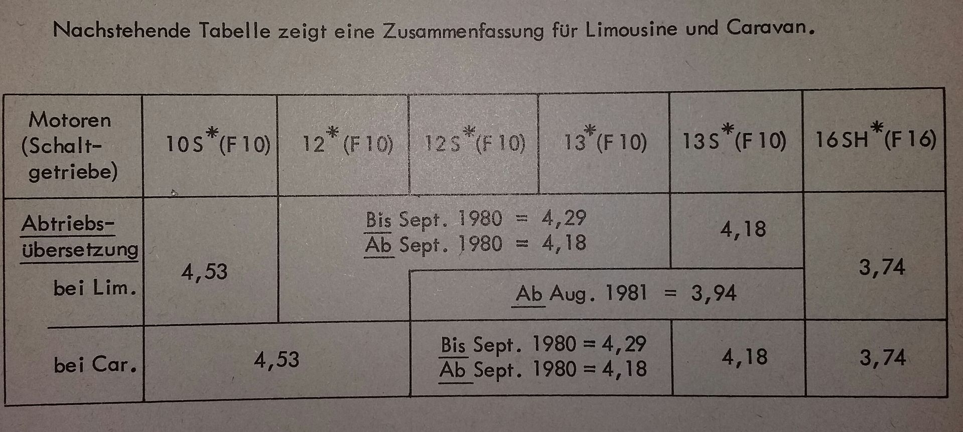 Dann hat das F10 Getriebe im 89´er Kadett E definitiv eine andere Gangübersetzung wie im Gegensatz zum F10 in Deinem 81´er Caravan, denn ab Februar 1983 hatte Opel die Getriebeübersetzungen geändert.