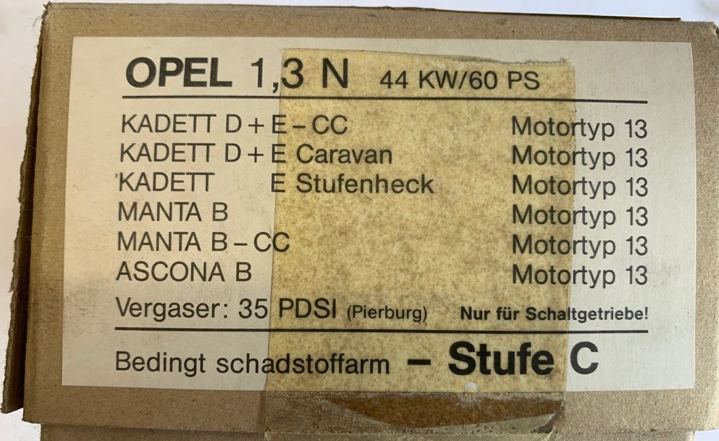 Der 13NB ist der sogenannte Euronorm Motor mit ungeregeltem Katalysator und dieser Motor ist bedingt schafstoffarm Stufe C.