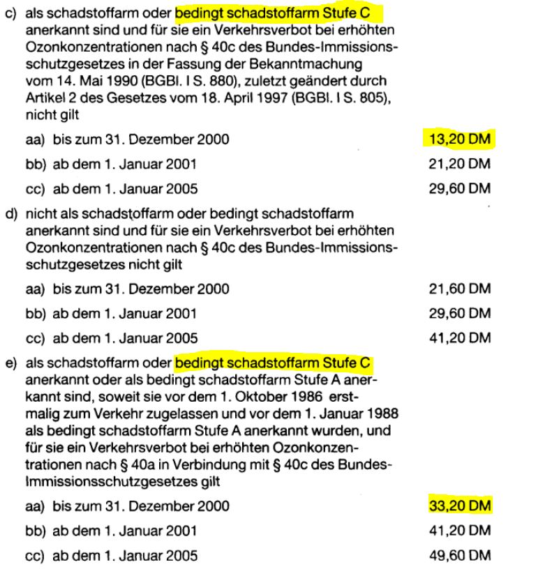 Auszug aus dem "Gesetz über steuerliche Maßnahmen zur Förderung des schadstoffarmen Personenkraftwagens"