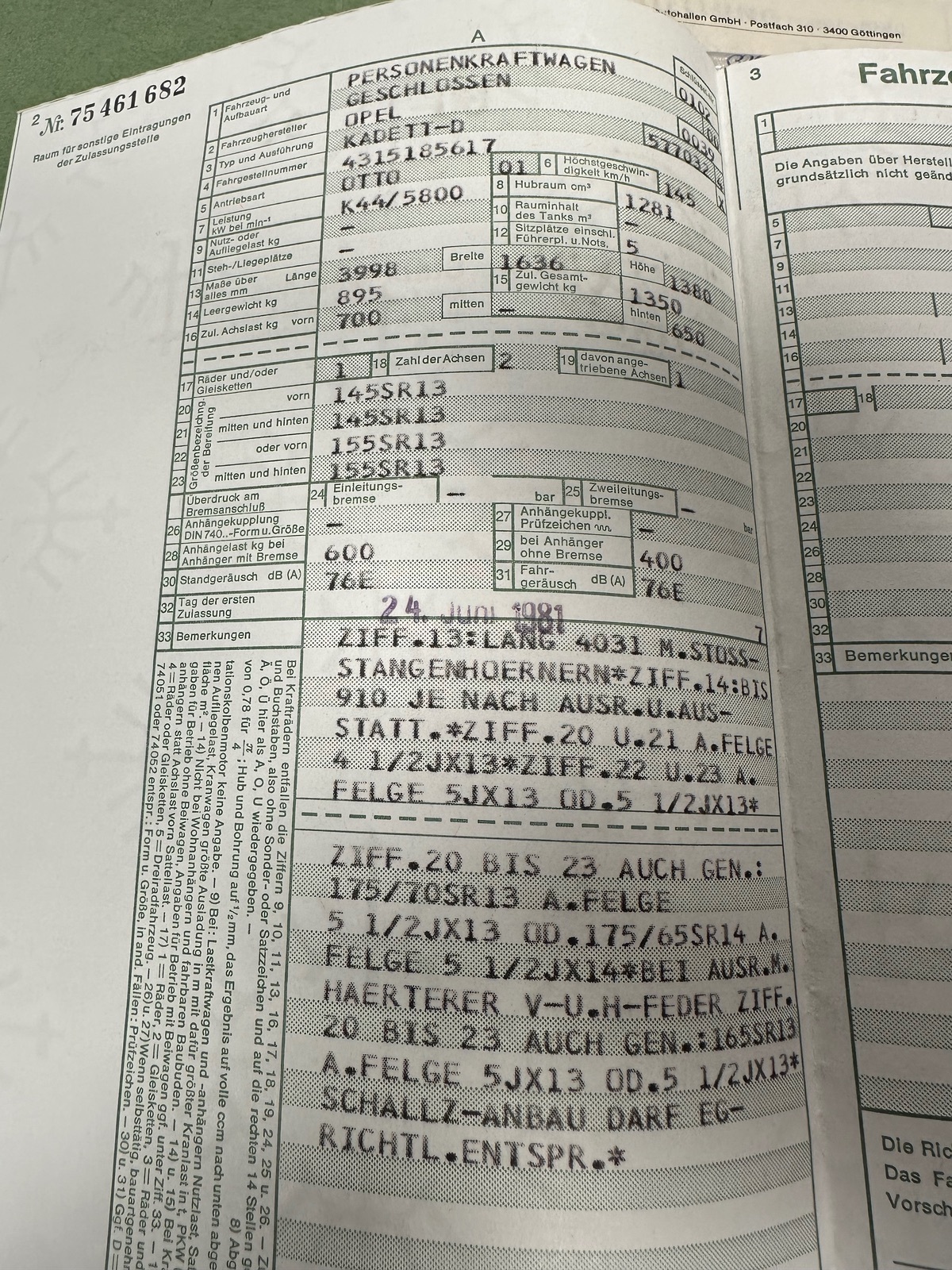 Dass sind Felgen vom Rekord E1, so viel mir bekannt gibt es für diese Felgen keine ABE passend zum Kadett D. Ob Du die Felgen über eine Einzelabnahme eingetragen bekommst, kann Dir nur der Prüfer Dines Vertrauens beantworten; dafür benötigst Du nur die auf den Felgen zu findende KBA-Nummer.