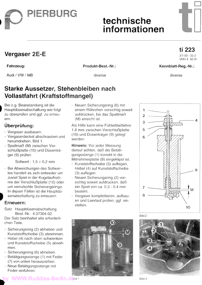 Service Anweisungen und technische Informationen zum 2EE Vergaser