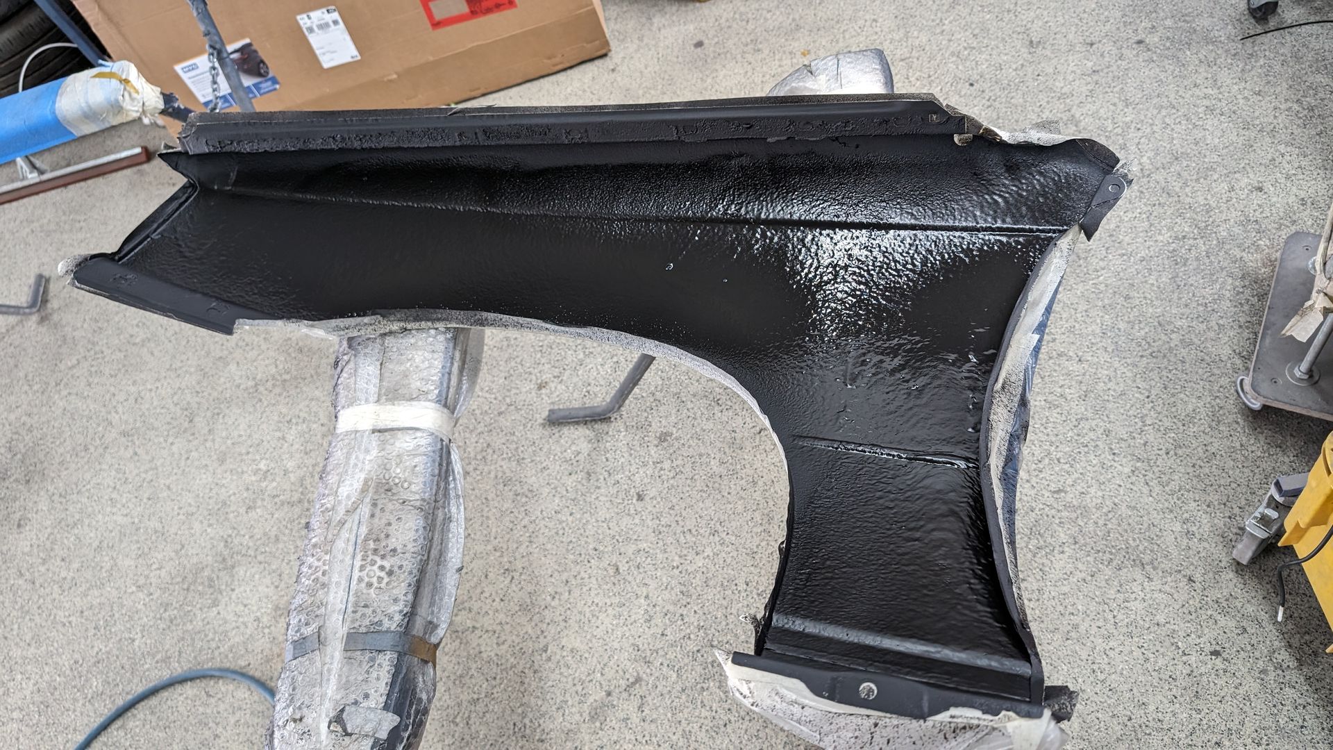 Die beiden Kotflügel haben heute noch fix 1l Unterbodenschutz bekommen. Mehr hilft mehr.