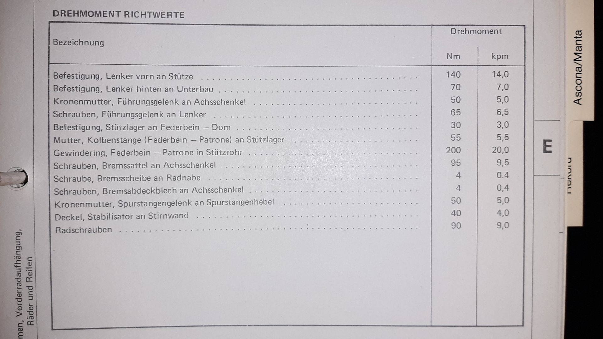 Welche Anzugsdrehmomente hat der Querlenker vom D.