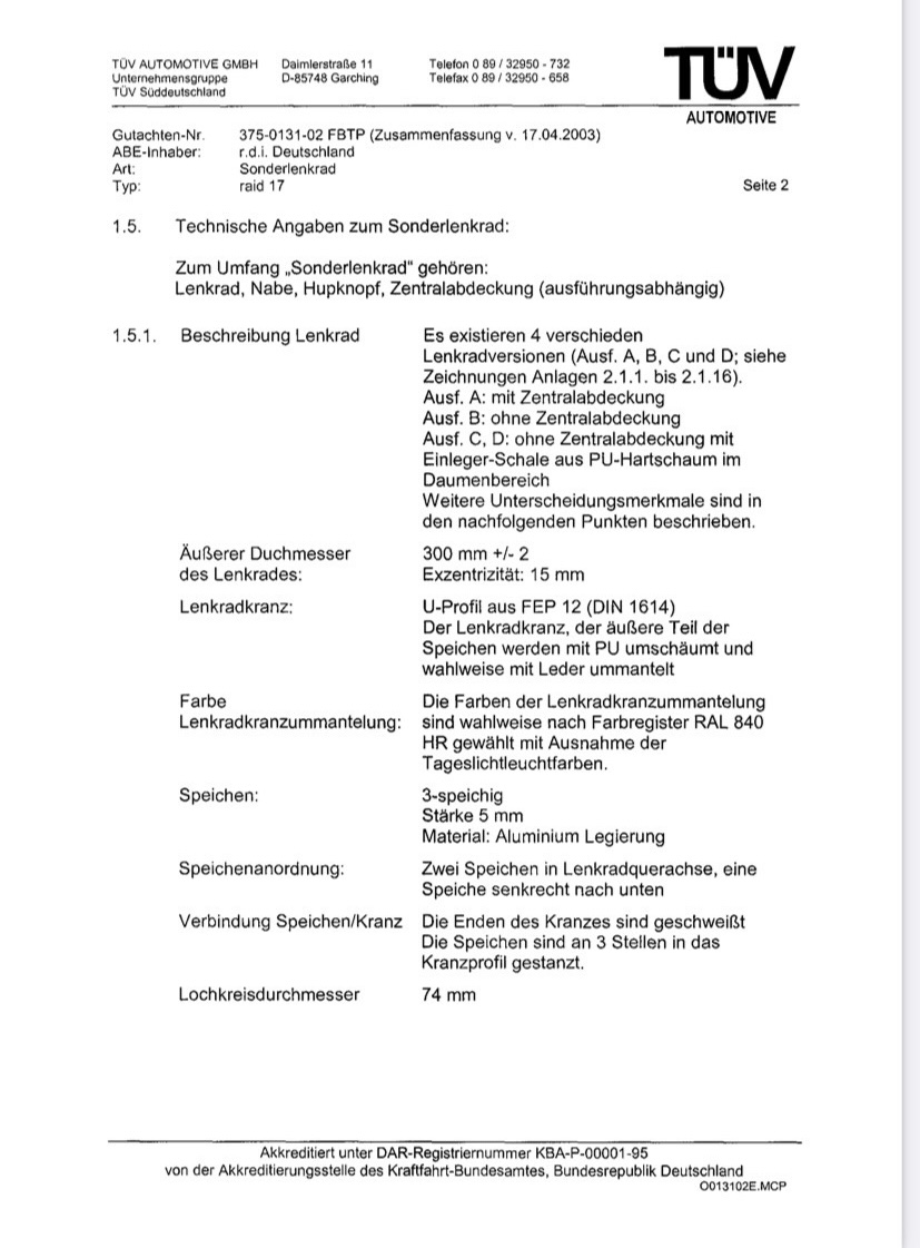 Gibt es ein Momo,RAID,Sparco oder ähnliche Hersteller die ich legal (mit ABE) verbauen könnte?