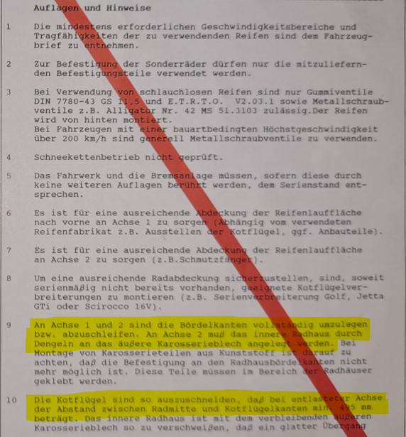 Die Eintragung war damals nicht so billig, ich musste ein Fahrwerksfestigkeitsgutachten vorlegen, weil für die Kadett Achse angeblich keine ET25 zugelassen ist.
