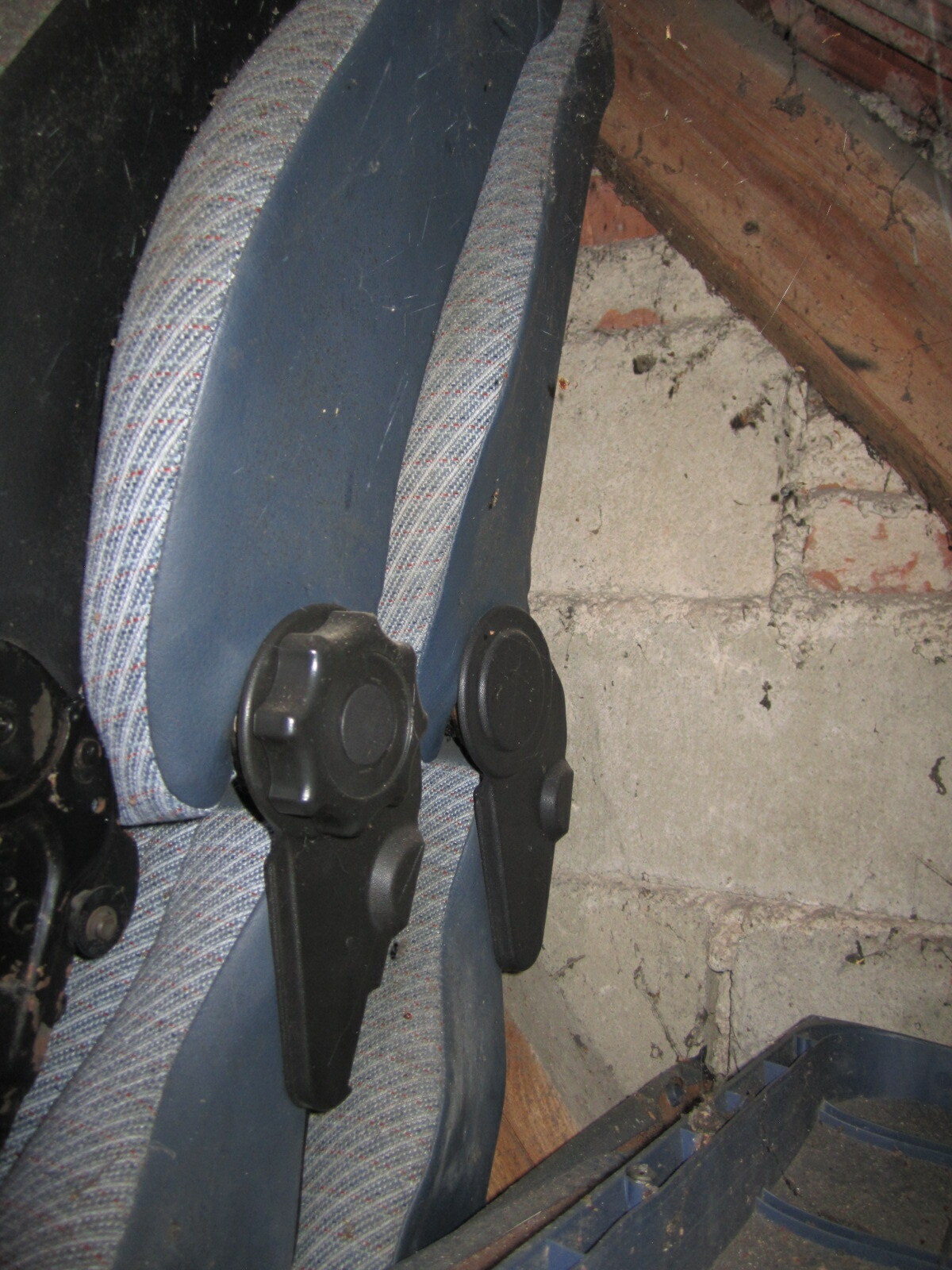 An der Rücksitzbank wurden mal Kopfstützen nachgerüstet (auch blau, nur in einem anderen Muster).
