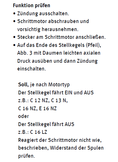 Da muss jemand schon ein verdammt gutes Gehör haben, wenn man das Arbeiten des Schrittmotors hören kann. Im ausgebauten Zustand hört man es bei eingeschalteter Zündung.