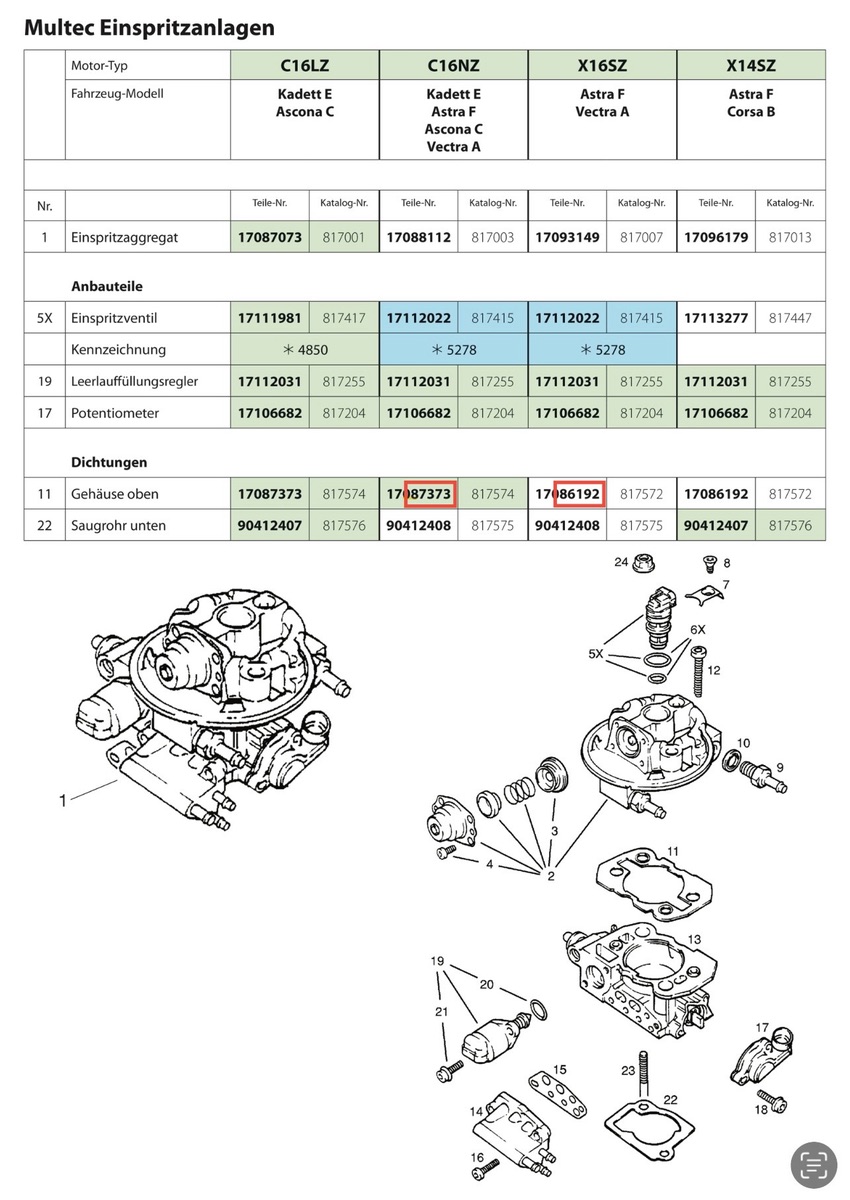 Siehe auch eingeprägte Nummern auf der Dichtung. Daher müsste deine alte Dichtung für eine Multec eines Astra F sein.