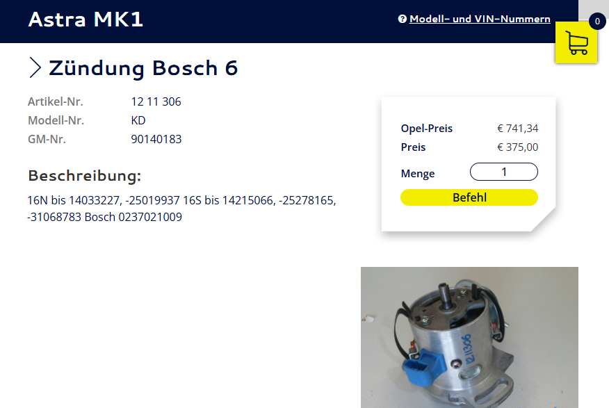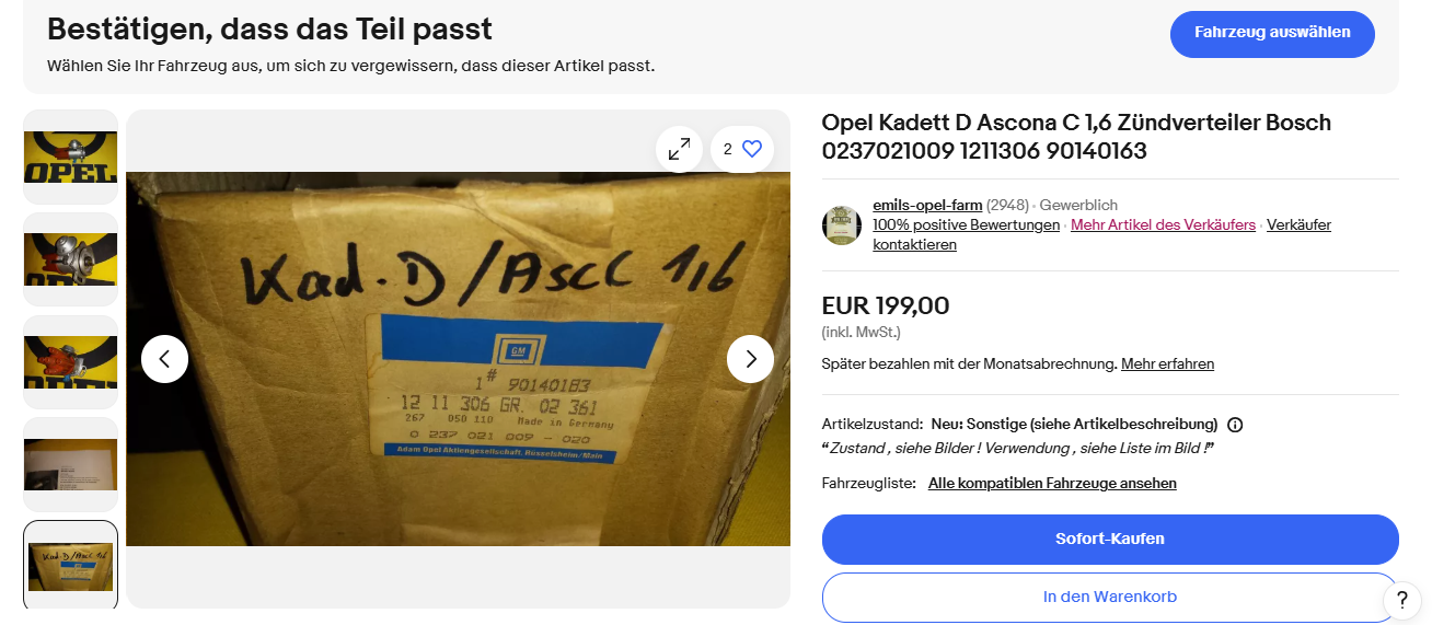 Bisher habe ich auf Ebay einen Zuendverteiler gefunden, aber ja, ich brauche eine Bestätigung, ob es wirklich das richtige Teil fuer meinen Wagen ist.