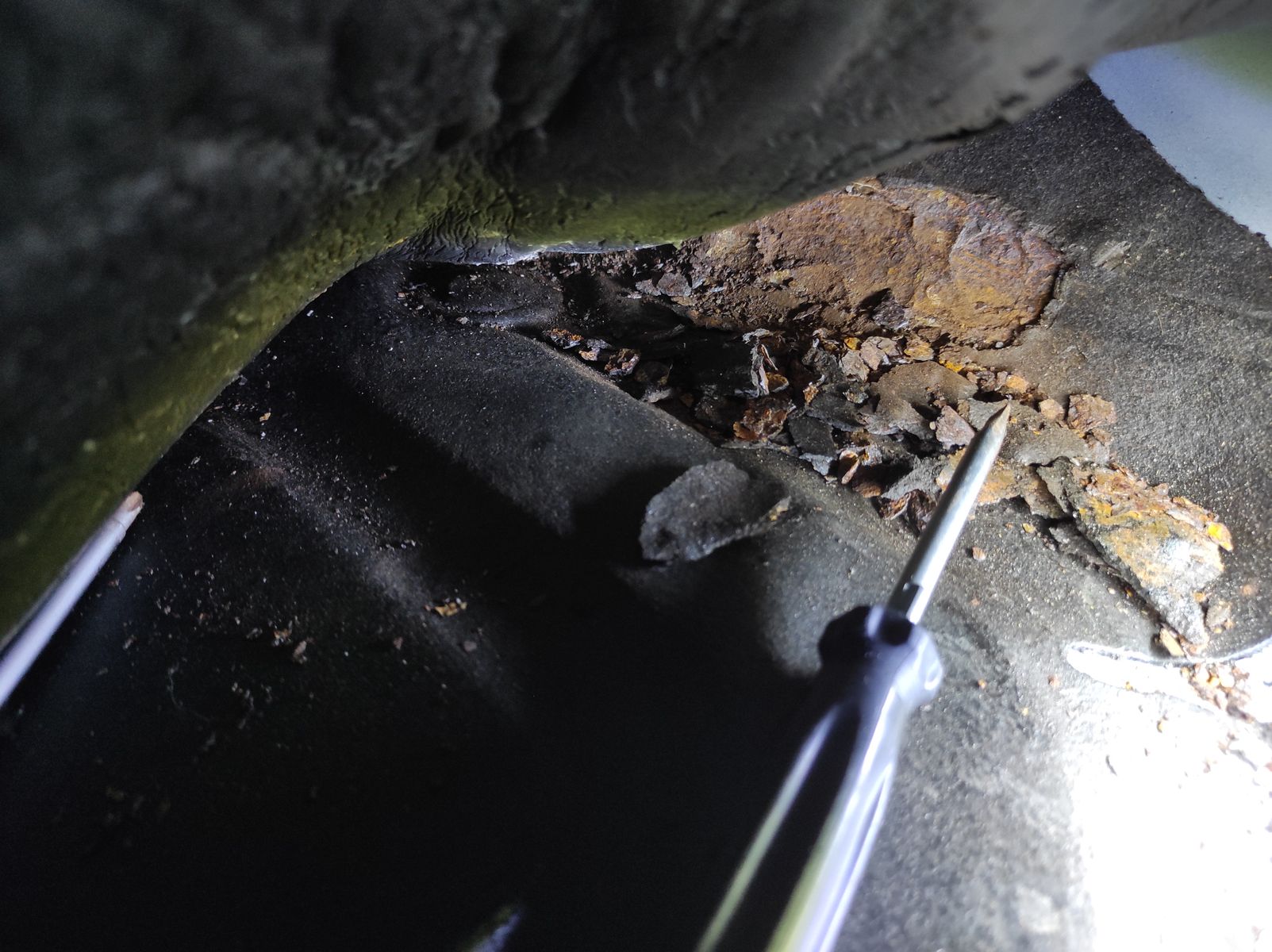 Beim leer räumen des Innenraums hab ich hinter den Pedalen eine größere Stelle Rost gefunden zwischen den Blechen. Ansonsten zum Glück nur Flugrost.