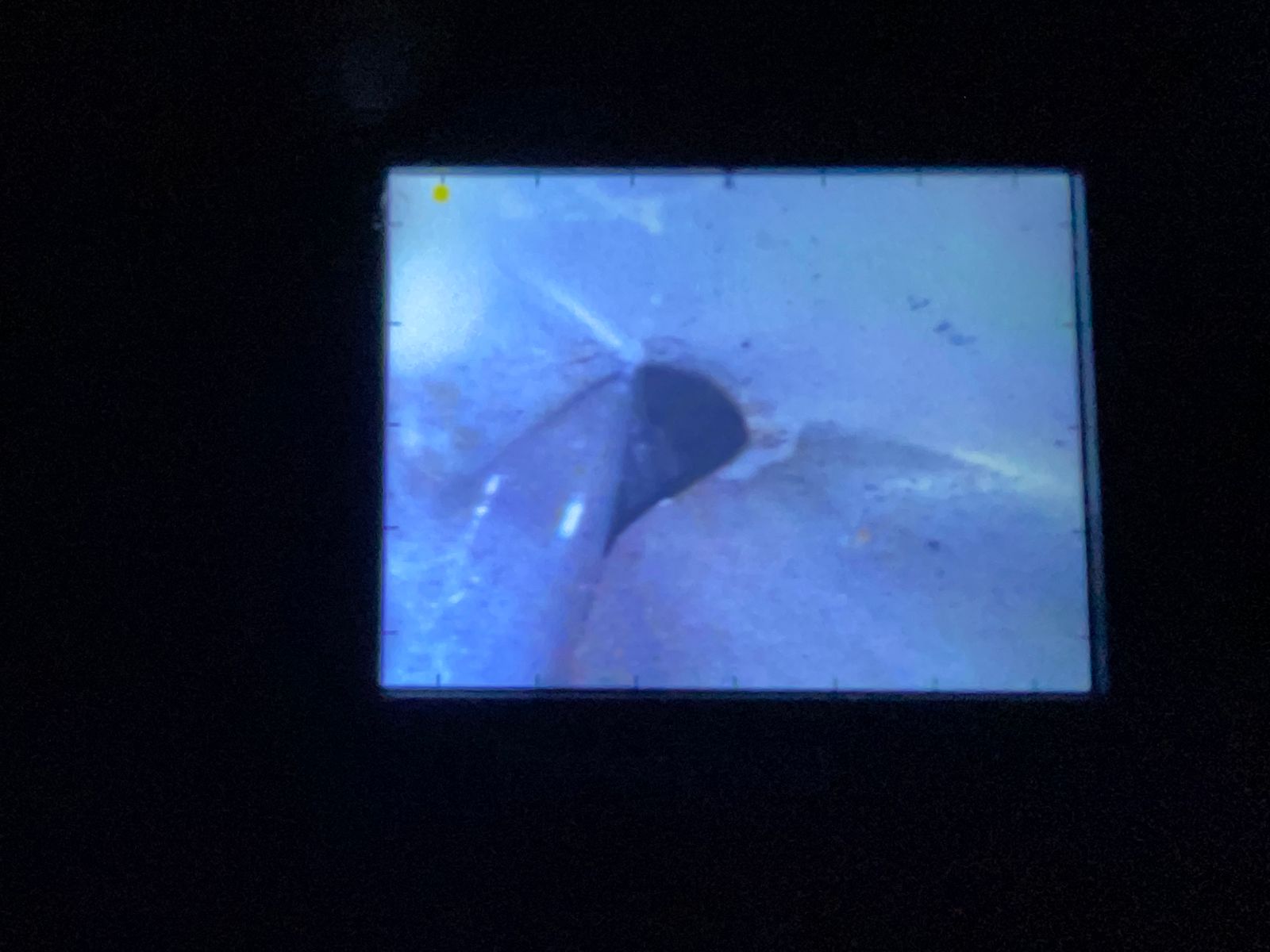 Im Hohlraum sieht es relativ gut aus. Neben Spinnen und etwas Dreck hab ich über die Kamera außer ein paar Pünktchen keinen Rost wahrgenommen. Wenn ich mir dagegen die Fotos jetzt anschaue, dann schimmert es allerdings schon deutlich rostbraun. Also muss ich das Loch morgen ein wenig weiten um mit der Inspektionskamera oder dem Auge besser hin zu kommen.