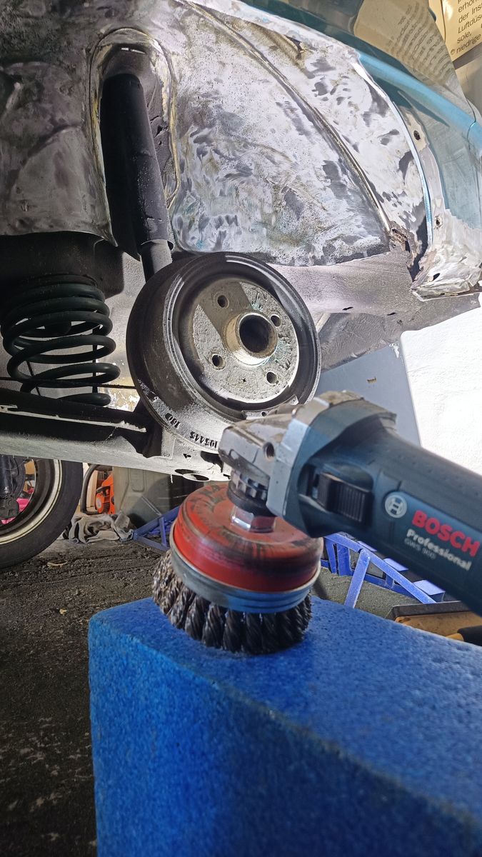 Der TÜV hat die braune Pest bemängelt, was dazu führte, dass ich die Schwellenverkleidung links abgemacht habe um nachzuschauen. Und die rechte, die Stoßstangen... Ach was soll's, einmal komplett bitte!