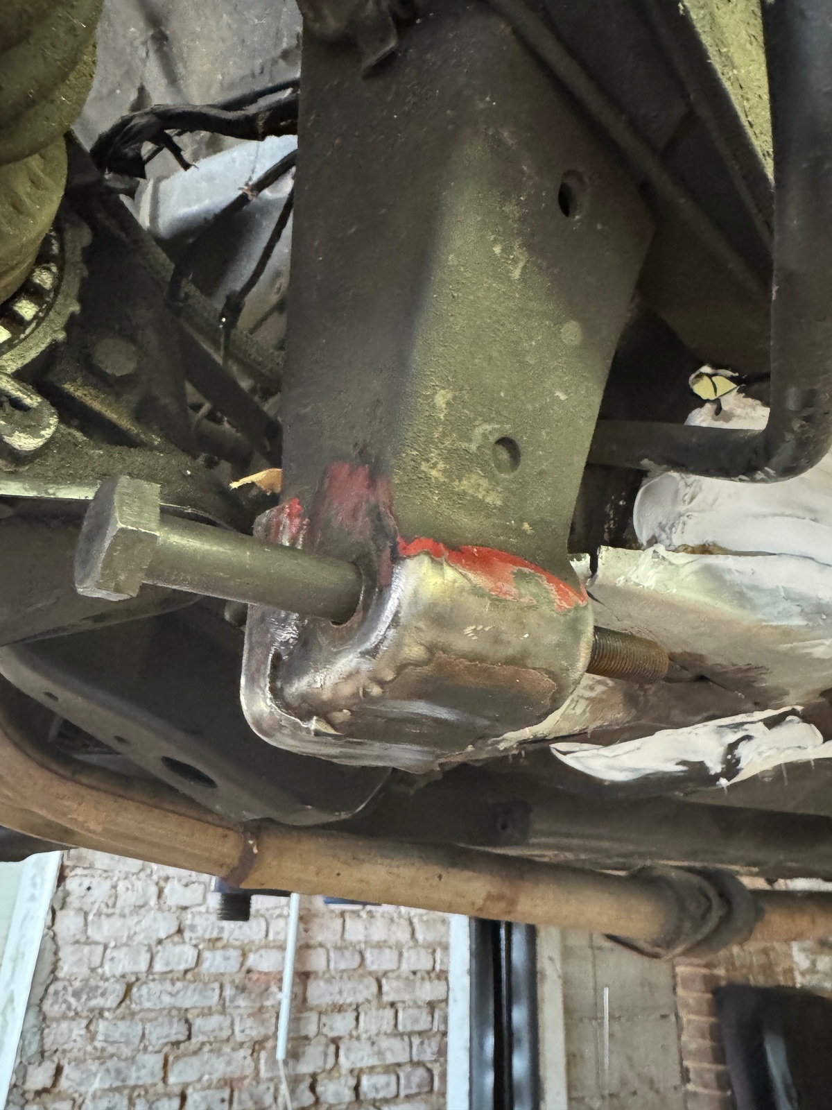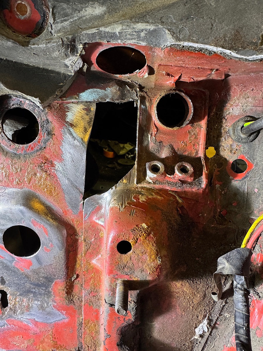Irgendwann mal hat dann auch jemand herausgefunden, warum er immer nasse Füße bekommen hat, und hat dann, mehr schlecht als recht, versucht vom Innenraum her, hinter Pedalen und Lenksäule, die Löcher zuzubraten. Noch reichlich U-Schutz oder sowas drauf und gut is…
