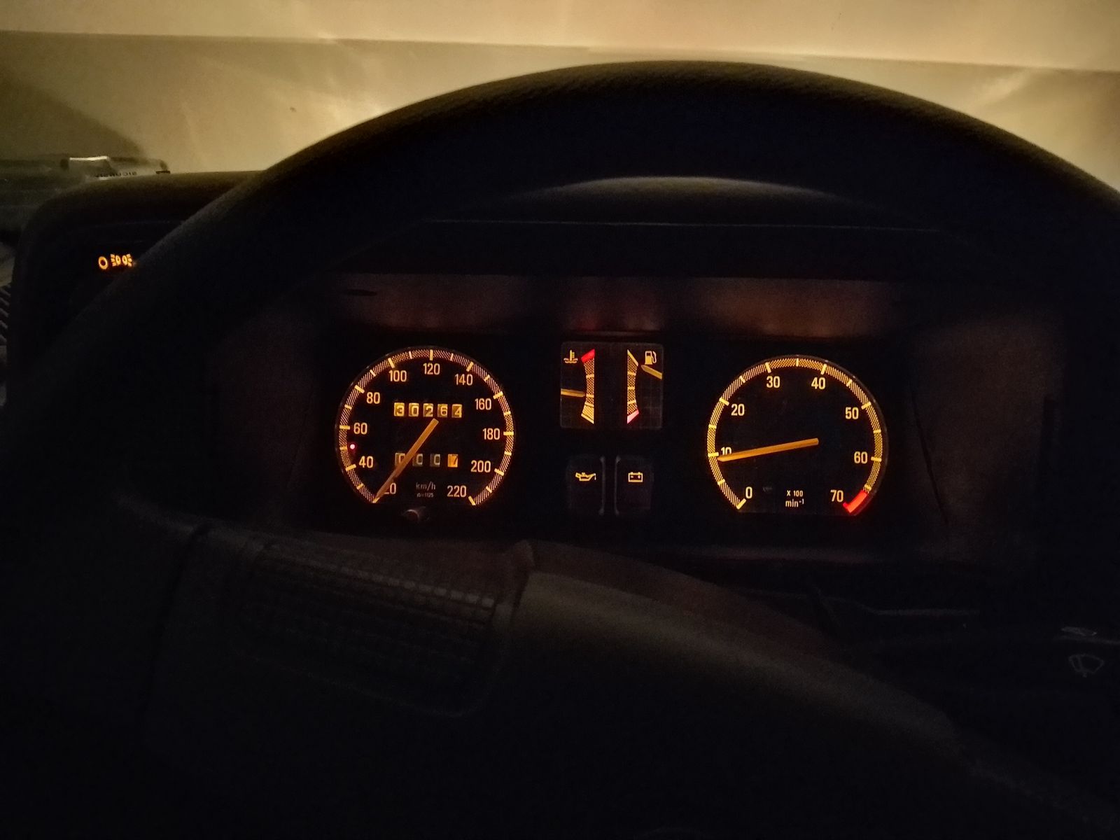 Du brauchst einen Tacho mit Wellenzahl W=1125 aus dem Kadett E, die passende Tachowelle und den Stecker vom normalen Tacho.