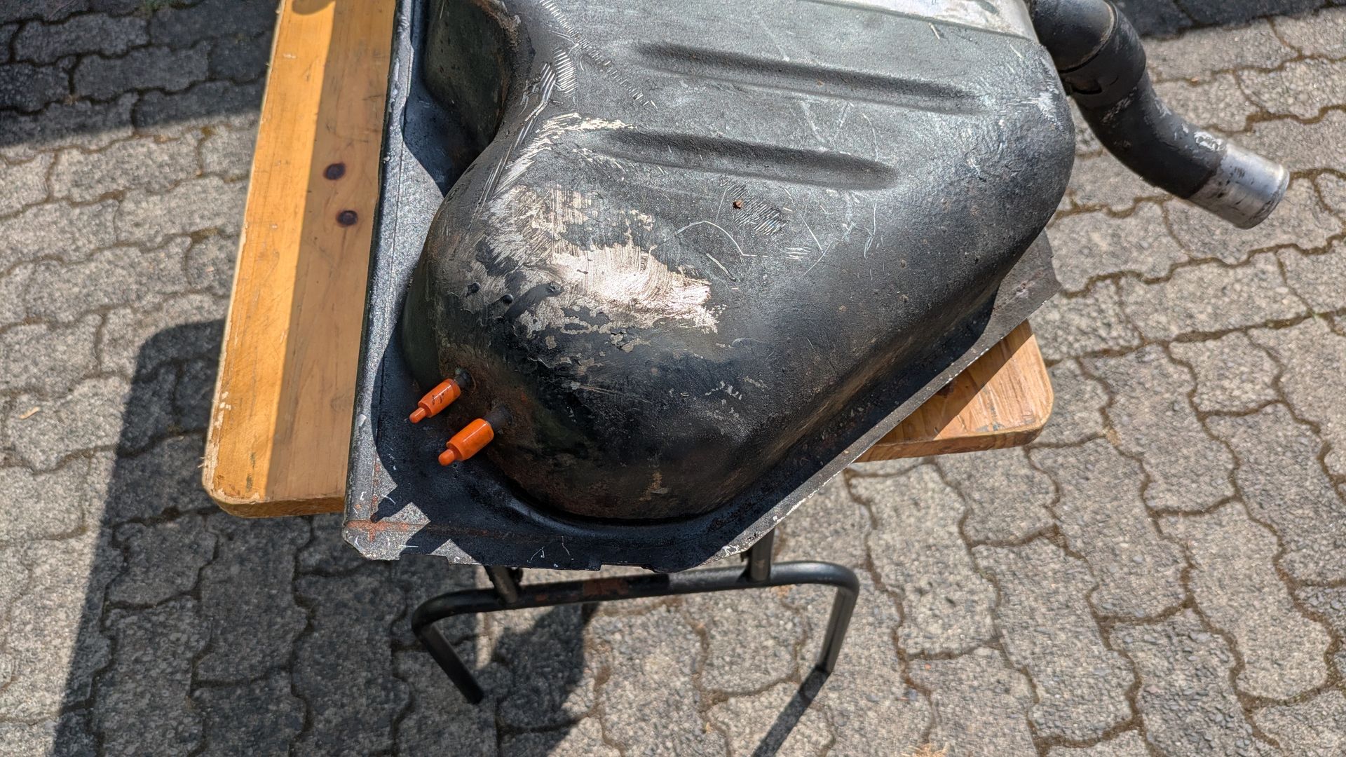 Nachdem ich fälschlicher Weise ein Loch im meinem Kraftstofftank diagnostiziert hatte, sich dann heraus stellte das nur die Dichtung vom Tankgeber durch war, aber der neue Tank schon da war....nun ja... Jetzt habe ich einen gebrauchten Tank abzugeben. Zustand wie auf den Bildern zu sehen. Zum Preis...was ist sowas wert? Keine Ahnung...... Aber versenden werde ich das Teil auf keinen Fall. Daher, wer kommt und ihn abholt, kann mit mir bei einem Schnitzel und ner Limo (fahren immer ohne Alkohol