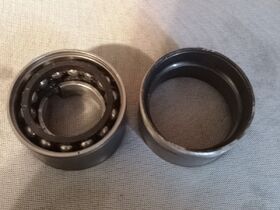 Wie sich jetzt herausstellt, habe ich beim Einbau einen Fehler gemacht, der bestimmt auch von dem ein oder anderen hier schon erwähnt wurde. Beim Einziehen der Radnabe habe ich auf der Gegenseite nicht am inneren Ring des Lagers abgestützt , sondern außen am Gußteil vom Federbein. Damit habe ich das Radlager geschrottet….