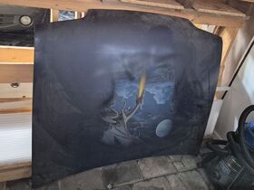 Ich habe noch eine blaue Motorhaube vom Kadett E mit Drachenbild.