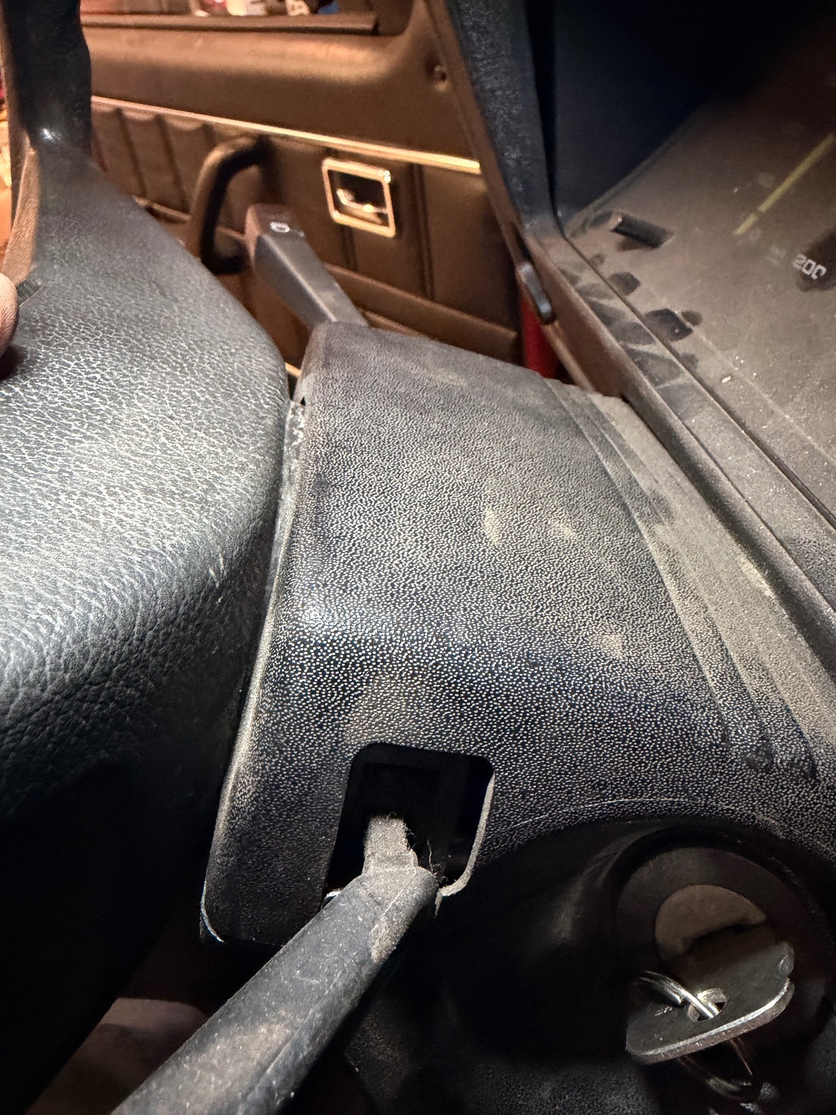 So wie es für mich ausschaut, sind die Kunststoffnietsicherungen in der Lenkspindel abgeschert und die Lenkspindel ist nun zusammen geschoben.