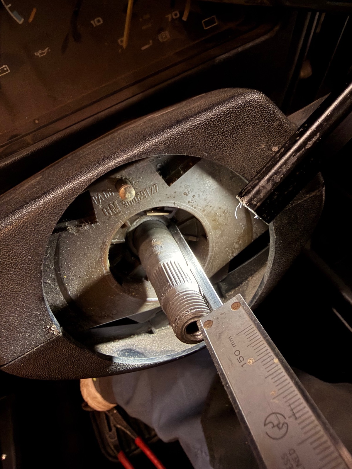 das hört sich nicht gut an… das Lenkrad war bis heute lose auf die Spindel geschoben. Mit dem Auto muss ich ja ab und an rangieren und bin damit vor ein paar Tagen noch über den Hof gefahren. Vorhin hab ich das Lenkrad abgezogen und wollte alles zusammenschrauben. Und jetzt fehlen mir besagte Zentimeter.