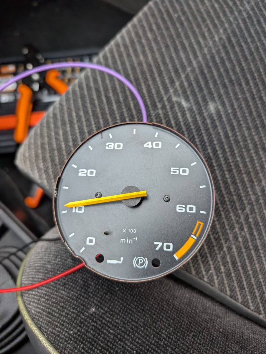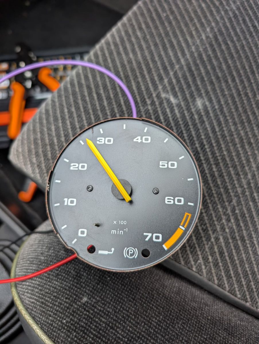 Natürlich hat es mich auch gereizt, ob der normale analoge Drehzahlmesser das Ganze akzeptiert – und das hat er. Ich habe ihn zwar nicht exakt eingestellt, da ich mir die Einstellung für den LCD-Tacho nicht versauen wollte, aber grundsätzlich sollte das genauso funktionieren. Die Abweichung zum LCD lag bei etwa 200 U/min.
