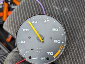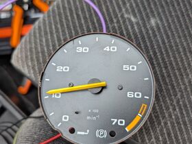 Natürlich hat es mich auch gereizt, ob der normale analoge Drehzahlmesser das Ganze akzeptiert – und das hat er. Ich habe ihn zwar nicht exakt eingestellt, da ich mir die Einstellung für den LCD-Tacho nicht versauen wollte, aber grundsätzlich sollte das genauso funktionieren. Die Abweichung zum LCD lag bei etwa 200 U/min.