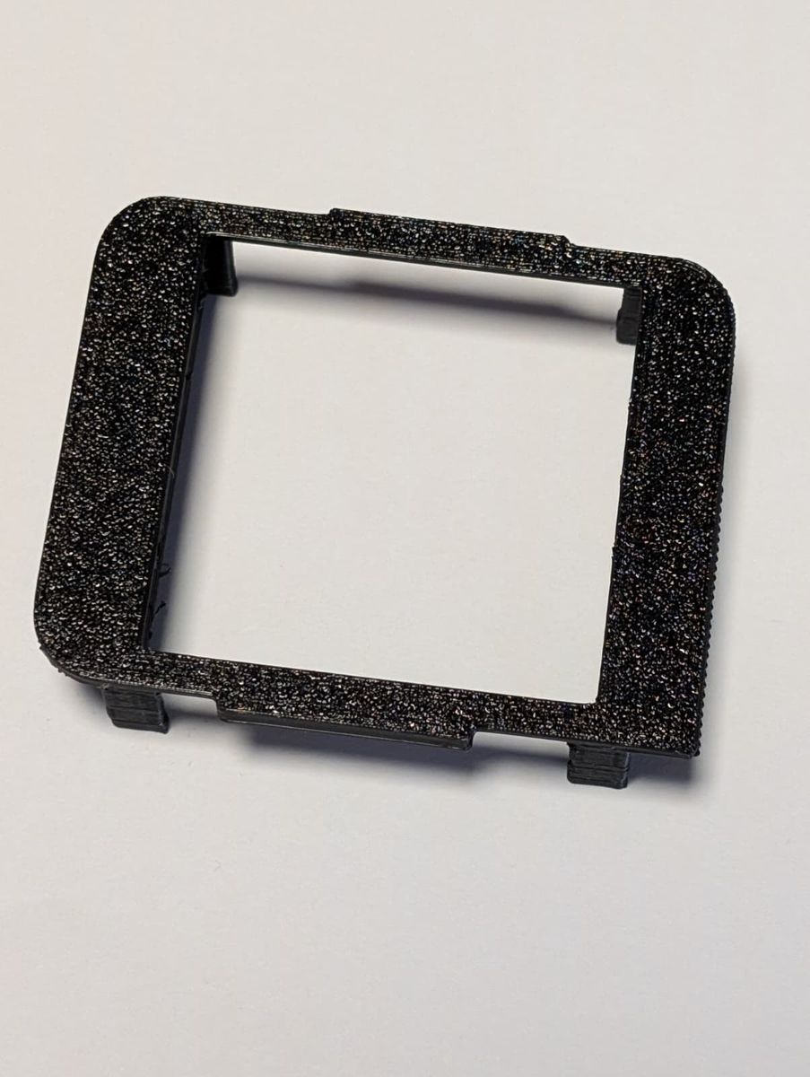 Ja habe ich mir auch überlegt das Problem ist nur ich habe keinen originalen Rahmen um die maße abzunehmen weshalb ich es dann so gelöst habe und ich weiß auch nicht ob das als 3D Druck Teil gut ausgesehen hätte da es Recht geschwungen ist man hätte es wahrscheinlich noch Nacharbeiten und lackieren müssen.
