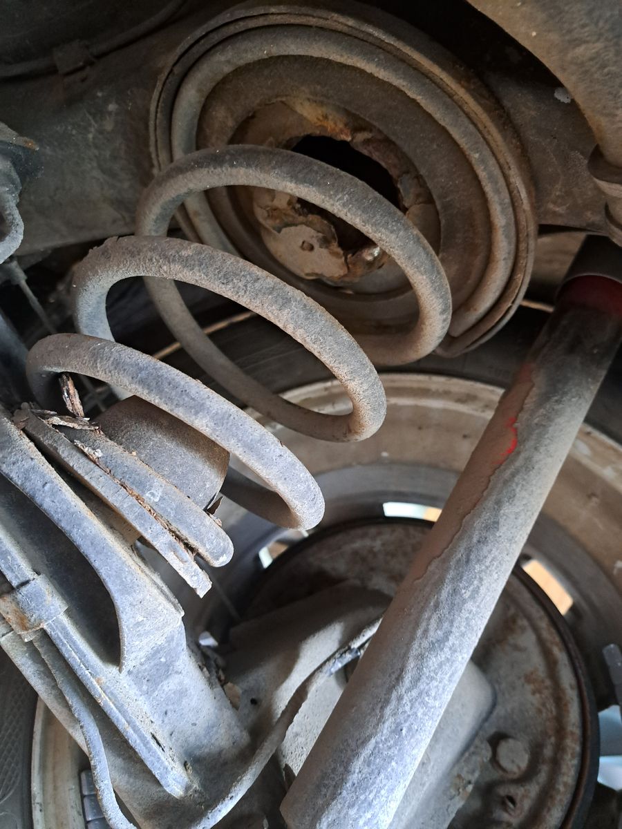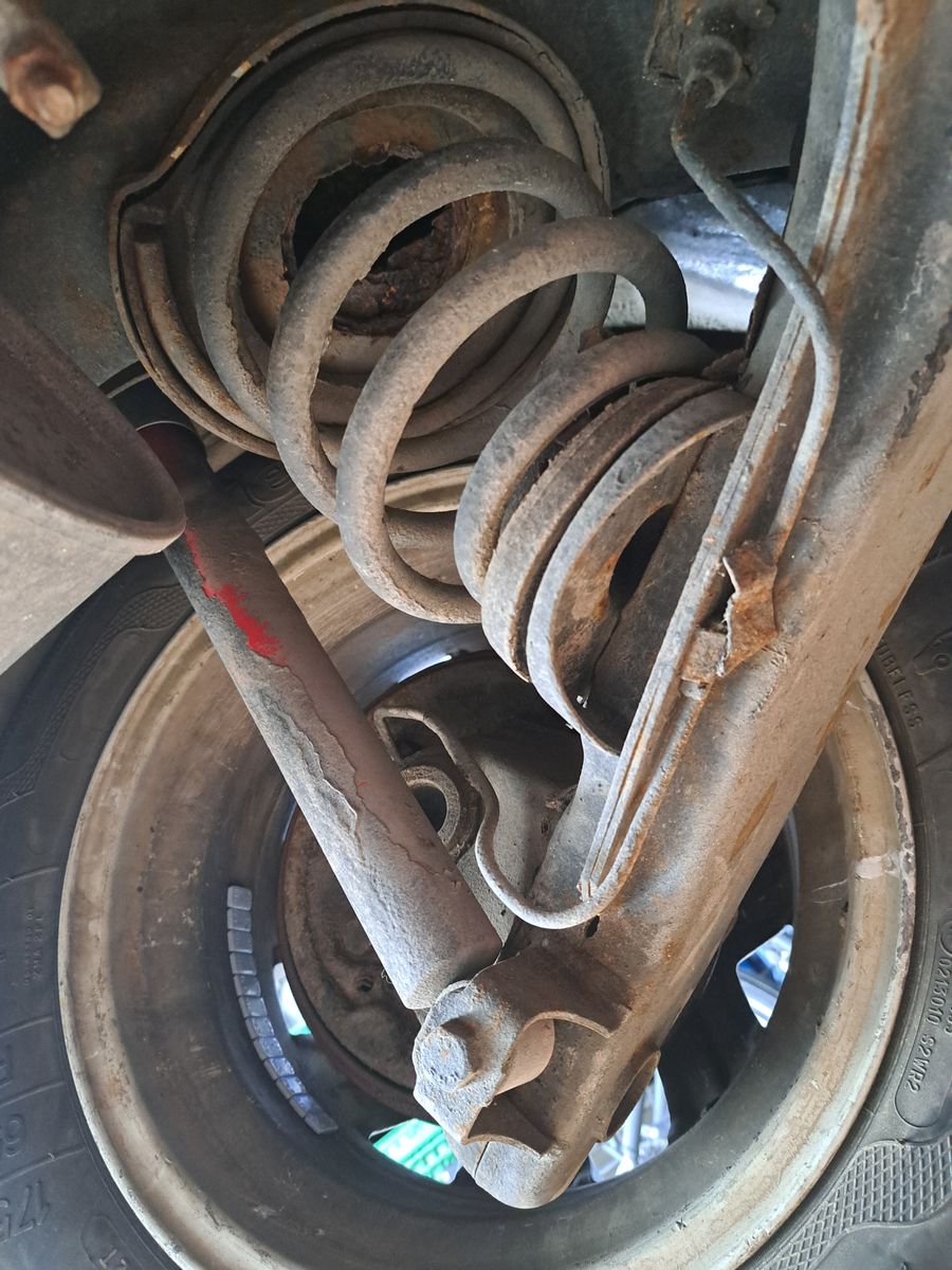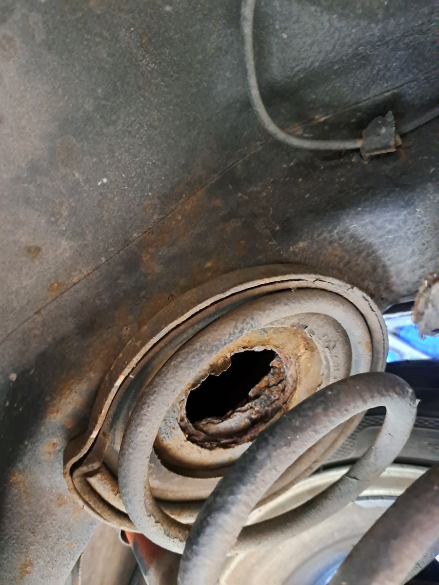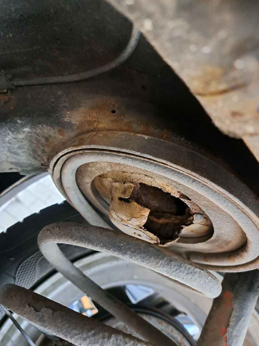 Da fällt mir was ins Auge.. Die oberen Federteller hinten auf beiden Seiten wiesen sichtbaren Rost auf, ein winziges Loch. Ihr wisst ja wie so was endet...