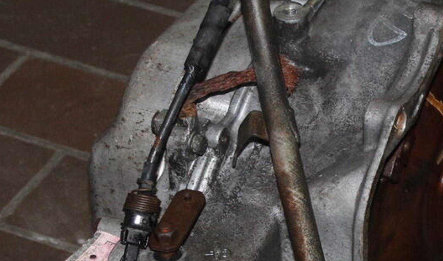 Hier ein Bild vom getriebeseitigen Befestigungspunkt des Massebandes am THM125 Automatikgetriebe. Bei einem Fahrzeug mit Schaltgetriebe sitzt das Masseband an der selben Position.