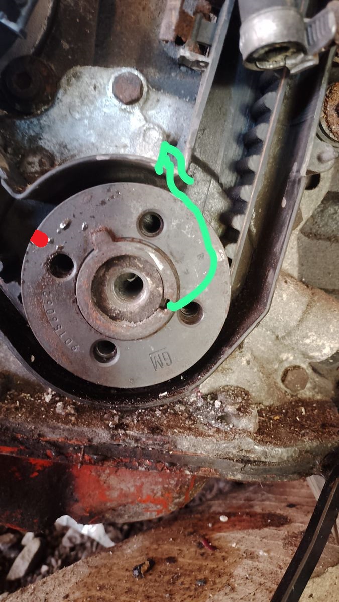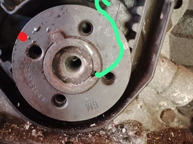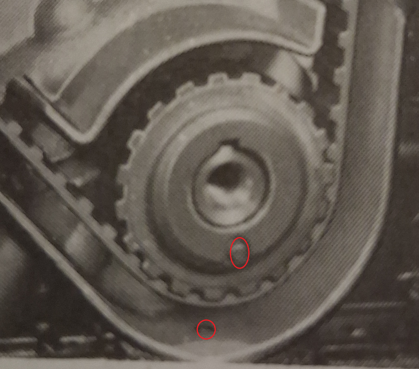 Bei den Family I Motoren (mir beim Family II nicht bekannt) gab es diese Variante, wo man an den Markierungen in den Kreisen sehen konnte, ob der Kolben 1. Zylinder oben ist, mehr aber auch nicht, kein Zünd-OT und auch keinen mittleren OT, dafür sind die Markierung viel zu grob.