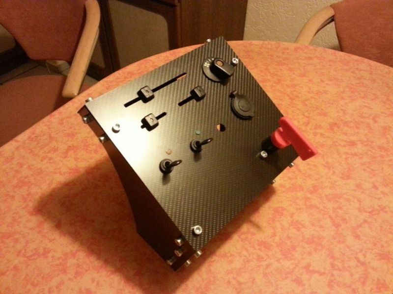 Sooo, das Thema Carbonmittelkonsole wird akut. Jetzt ist soweit alles fertig. Es fehlen noch ein Schalter und die Beschriftung sowie die Lüftungssymbole. Das sollte dem kleinen ein wenig Rennsport-Feeling verpassen.
