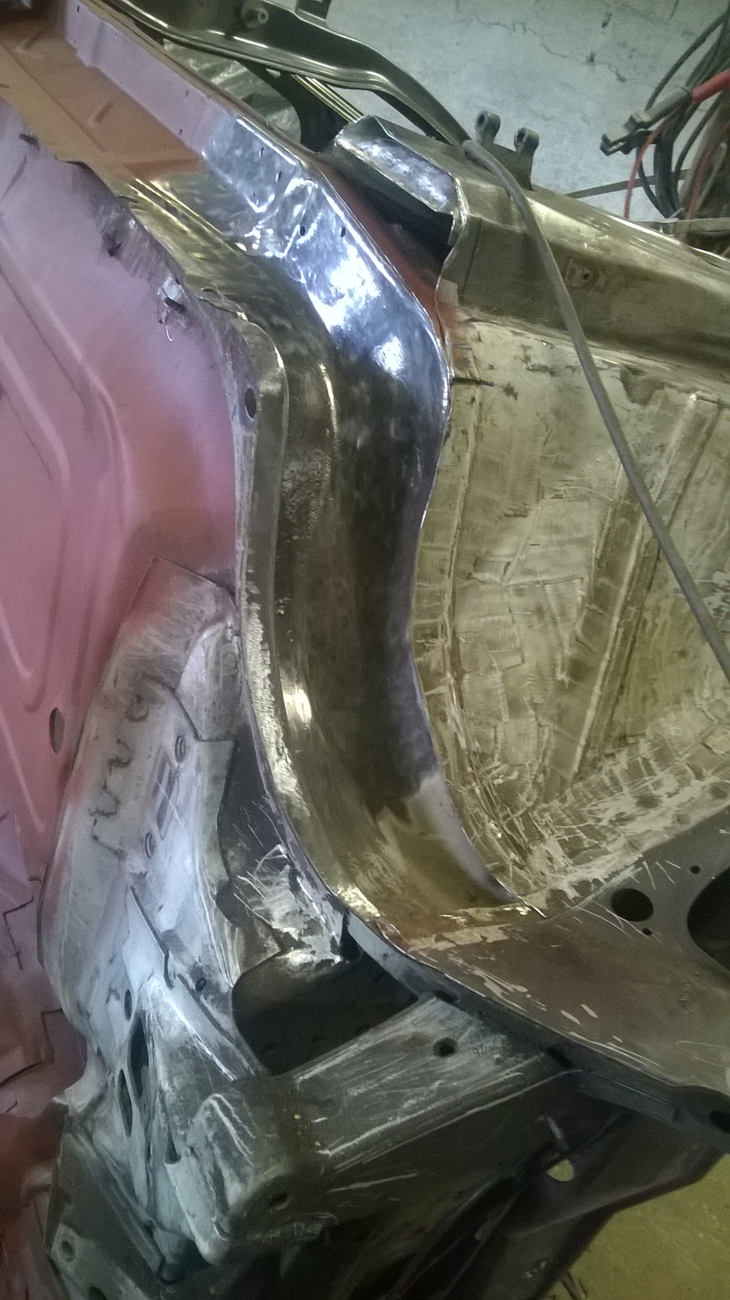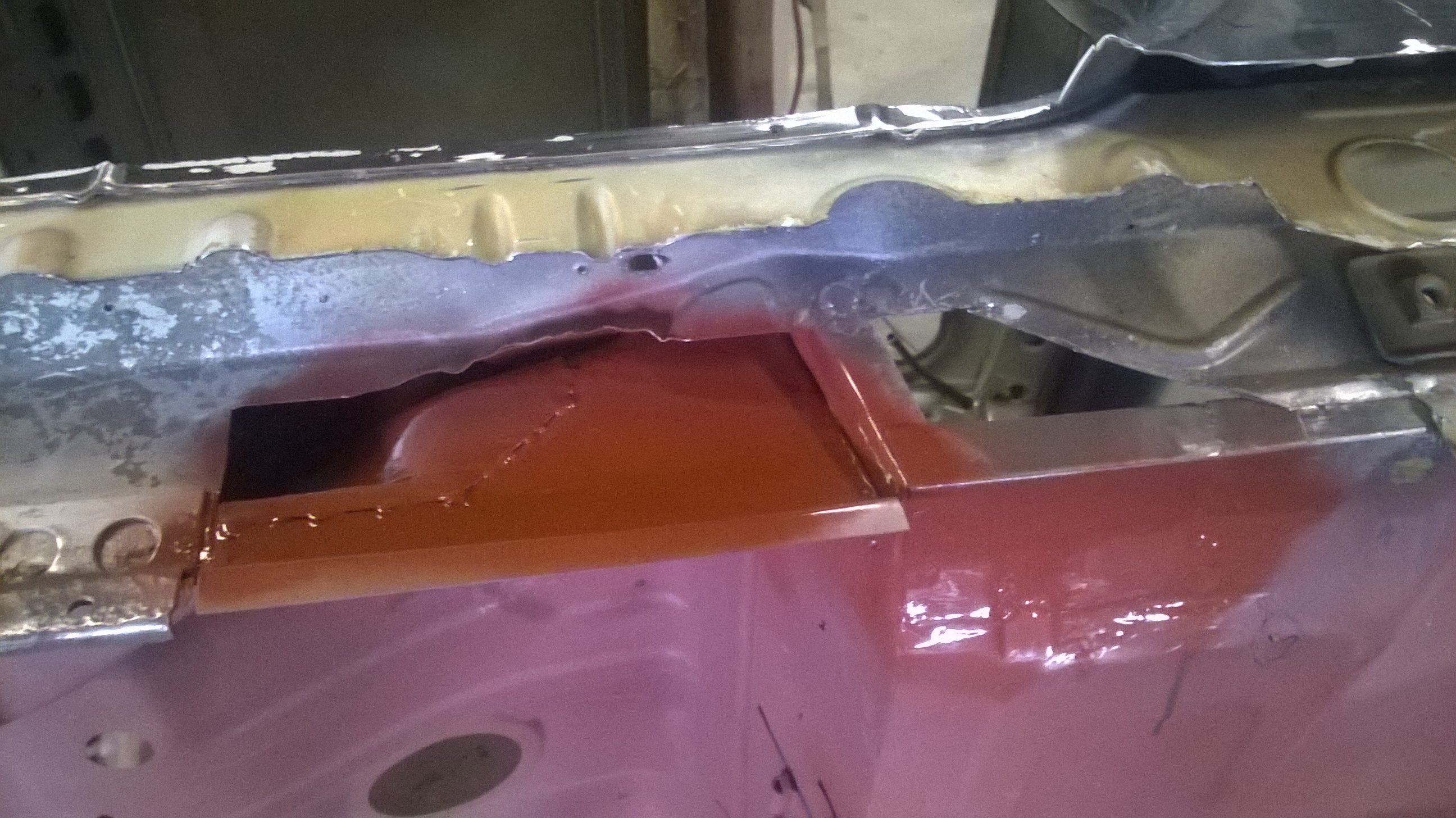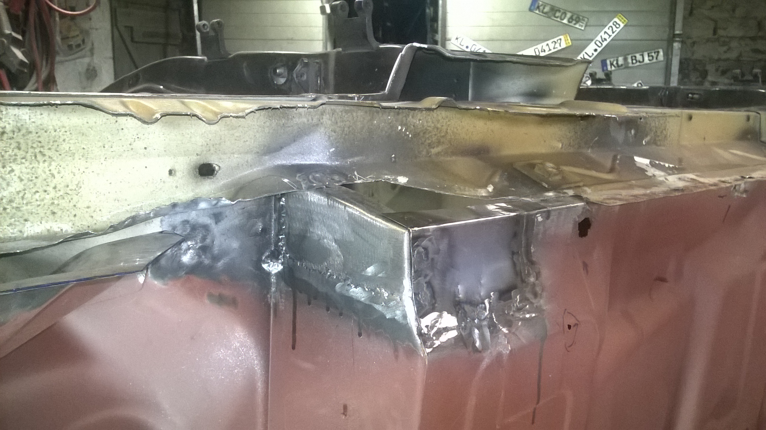 Dann habe ich das kleine Stehblech neu angefertigt und angeschweißt, danach natürlich auch grundiert alles.