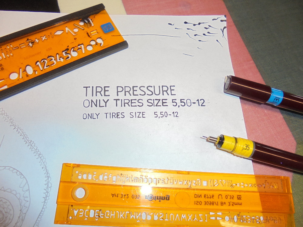 Den Göttern sei dank haben wir mal irgendwann den Umgang mit Rapidografen gelernt und die Ausrüstung noch in der Schublade. Passende Schablonen in der DIN 6776/1B lagen auch noch ind er Schublade. Nun kann morgen der Aufkleber auch ersetzt werden.