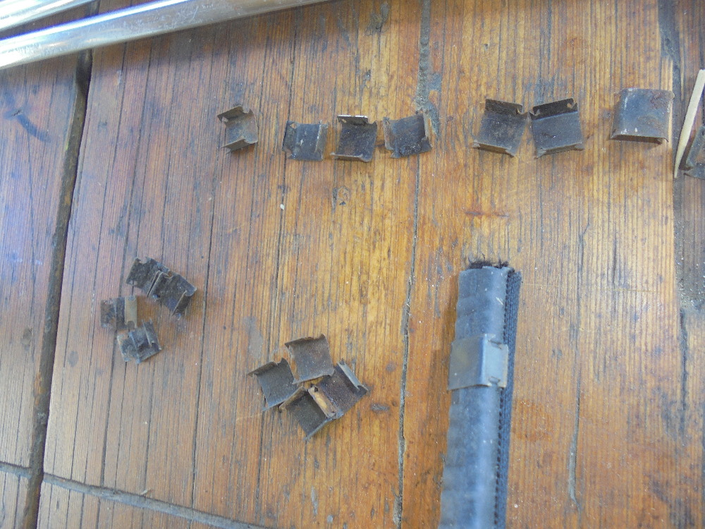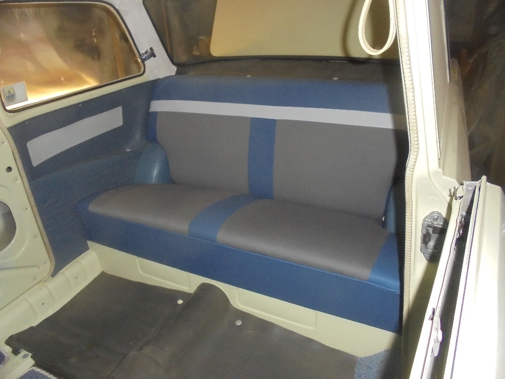 Neue Ankerplatten für die Dichtungsgummis des Türdrehfensters gefertigt. Rückbank neu bezogen und eingebaut.
