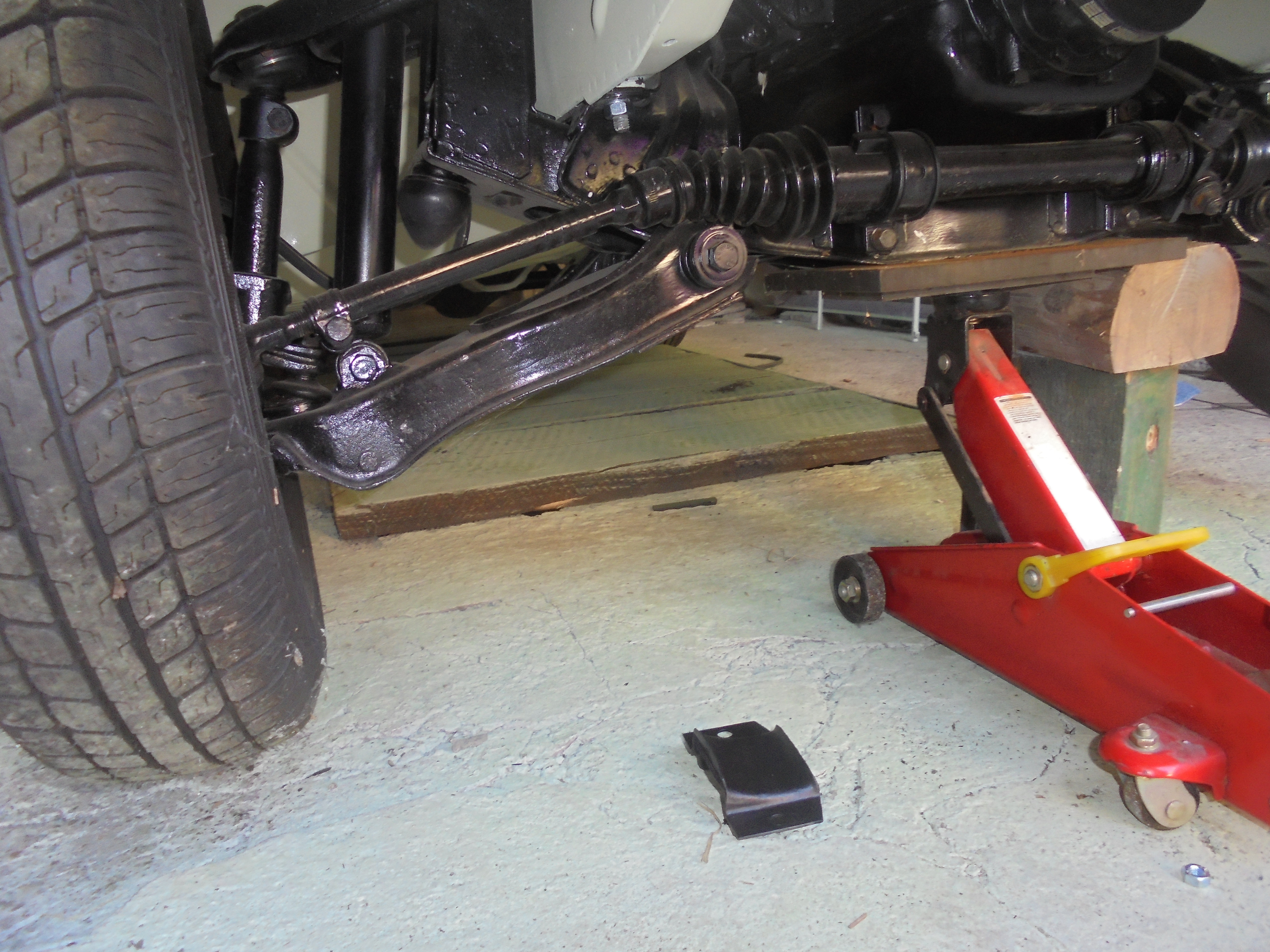Offenbar hat ein Dummkopf (ich) vergessen die Auflagen für die Blattfeder in die Vorderachse einzubauen.