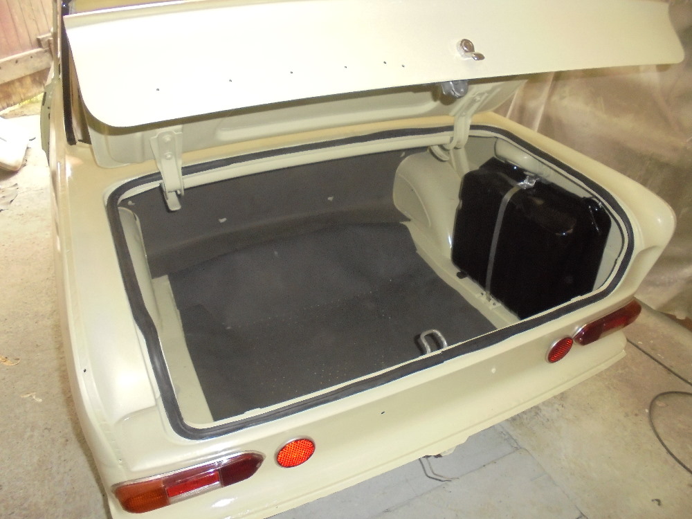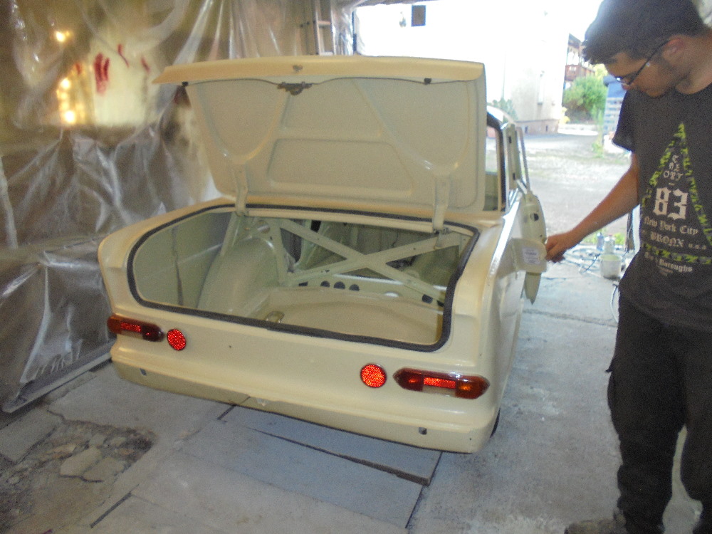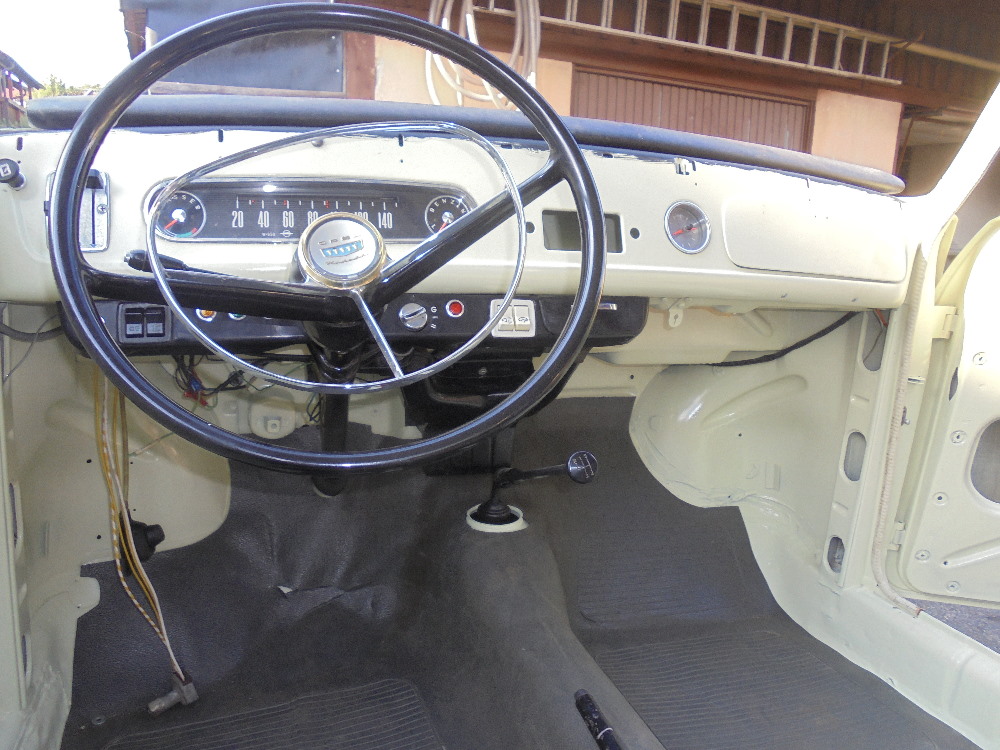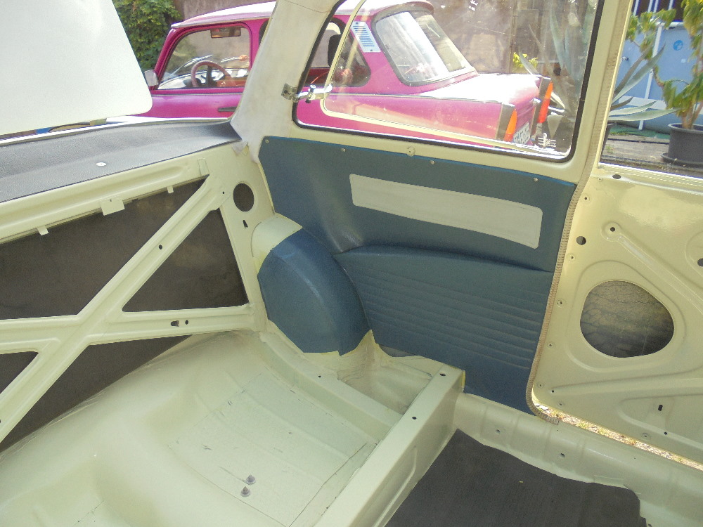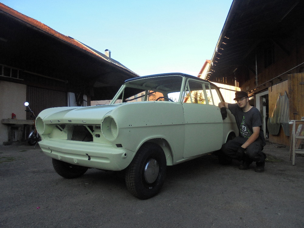 Um Genau zu sein hat meine Alexandra alle Arbeiten an ihrem Auto weitgehend selbst gemacht. Natürlich wurden die Bleche für die doch schon immensen Durchrostungen und abgefaulten Radläufe und doppelten Schweller von unserem Sohn Jannik gemacht und ich habe eingeschweißt, aber alles Verputzen, die Aus- und Einbauten und Lackiervorbereitungen wurden alle von ihr ausgeführt. Nicht perfekt, aber so gut wie sie es kann und wir sind alle mächtig stolz auf ihr Werk, auch wenn Kleinigkeiten, wie die Front mit den unten liegenden Blinkern , kleinerem Kühlergrill mit anderer Motorhaube etc. und das Radio nicht ganz dem Schneekönig entsprechen. Sogar eine rote innenausstattung wie es sie in den Schneekönigen gab und einen innenverstellbareren Außenspiegel konnte sie bekommen.
