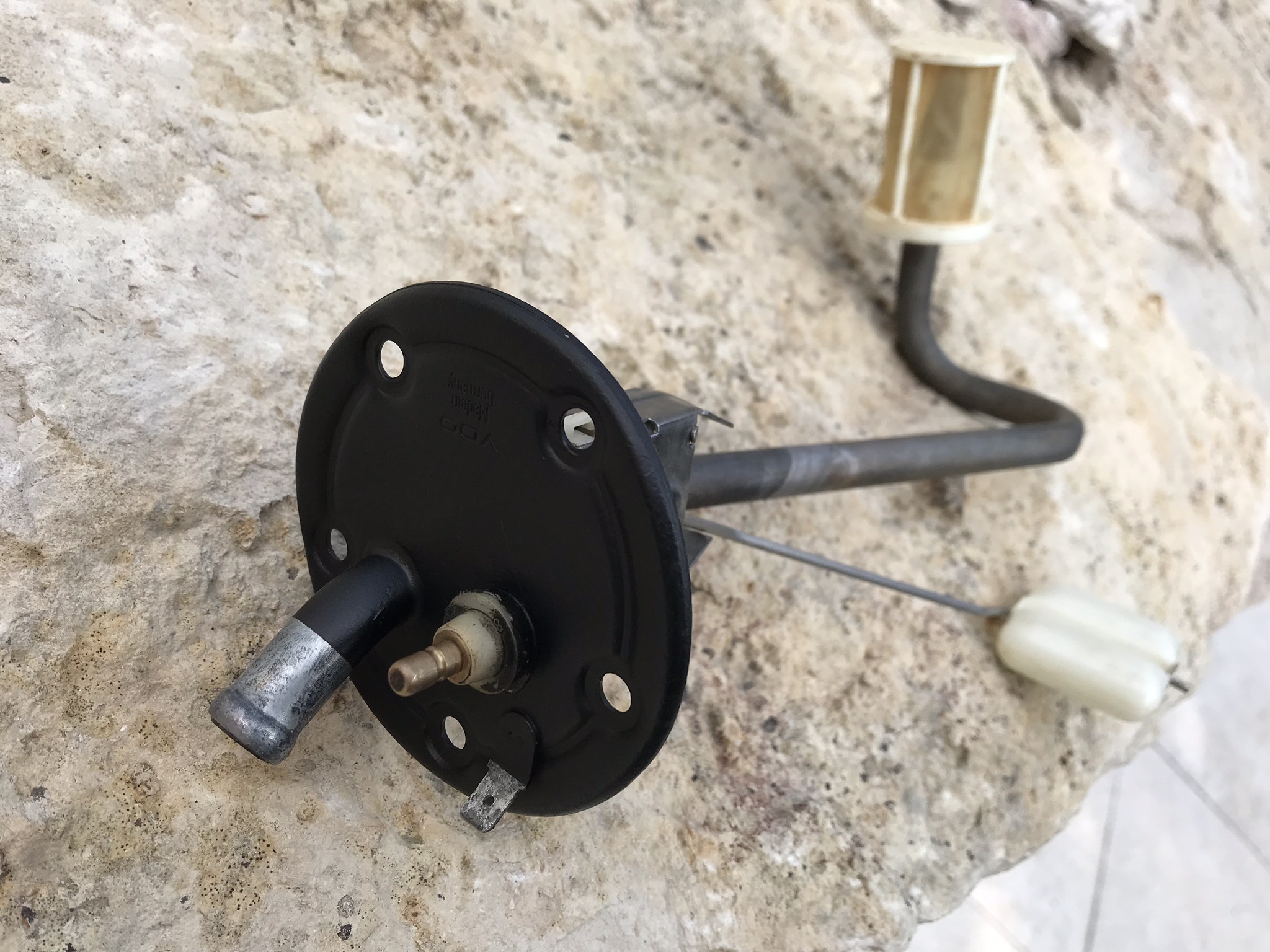 schaut mal was nach dem Benzinfiter in die Colaflasche lief, das Benzin war hier schon verdächtig verfärbt, der Tank total verrostet und auch der Geber zeigt, warum er nicht funktioniert.