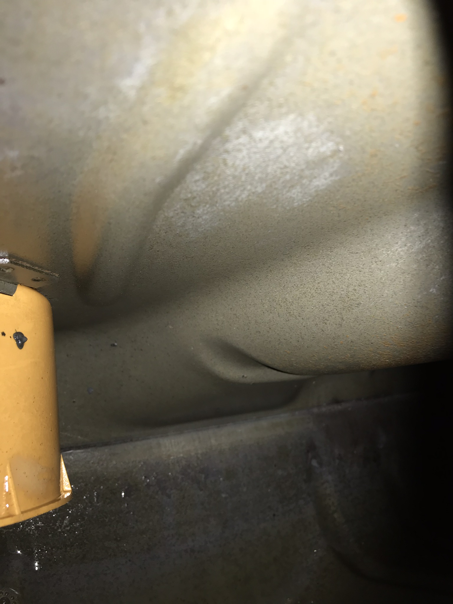 Den Tank habe ich mit dem Wagner Tankversiegelungsset behandelt. Das Bild zeigt den Tank von innen nach der Rostumwandlung. Ich finde das Ergebnis super, wenn man bedenkt wie zugesetzt er vorher war.