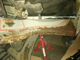 Das Rote will ich nämlich raus trennen und ersetzen. Der kleinere Teil ist die Stelle. Wo die Stütze an dem Träger fest geschweißt ist. -