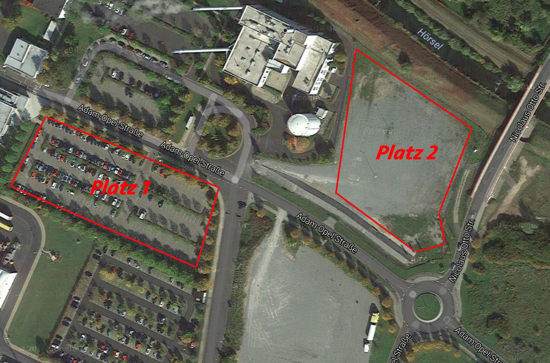 Aufgrund der vielen Nachfragen findet Ihr hier nochmal eine Karte, wo das Treffen genau stattfinden wird. Letztes Jahr fand es auf dem eingezeichneten Platz 2 statt, aber dieses Jahr können wir ganz offiziell den als Platz 1 markierten Parkplatz direkt vor dem Opel Werk zum Ab- und Ausstellen unserer Autos benutzen.