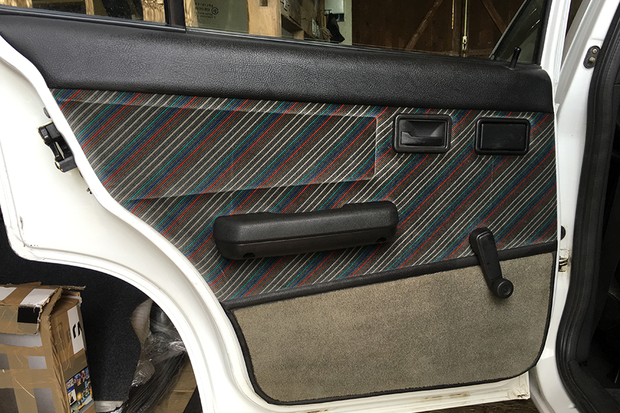 Erstmal habe ich noch eine komplette Rainbow Innenausstattung aus einem Kadett GSi 16V 3-Türer mit nicht geteilter Rückbank geholt. Mit dieser kann ich die Ausstattung aus meinem 5-Türer 16V komplettieren, da ich ich den Fun nicht auf eine geteilte Rückbank umbauen wollte.